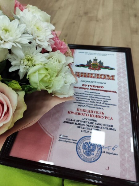 В институте развития образования Краснодарского края прошло награждение победителей краевого конкурса "Лучшие педагогические работники дошкольных образовательных организаций в 2025 году". Среди награждаемых победителей был наш педагог - БУТЧЕНКО АЛЕКСАНДРА АЛЕКСАНДРОВНА!!!Поздравляем Александру Александровну с заслуженной наградой! Желаем высоких профессиональных достижений Гордимся нашим педагогом!!